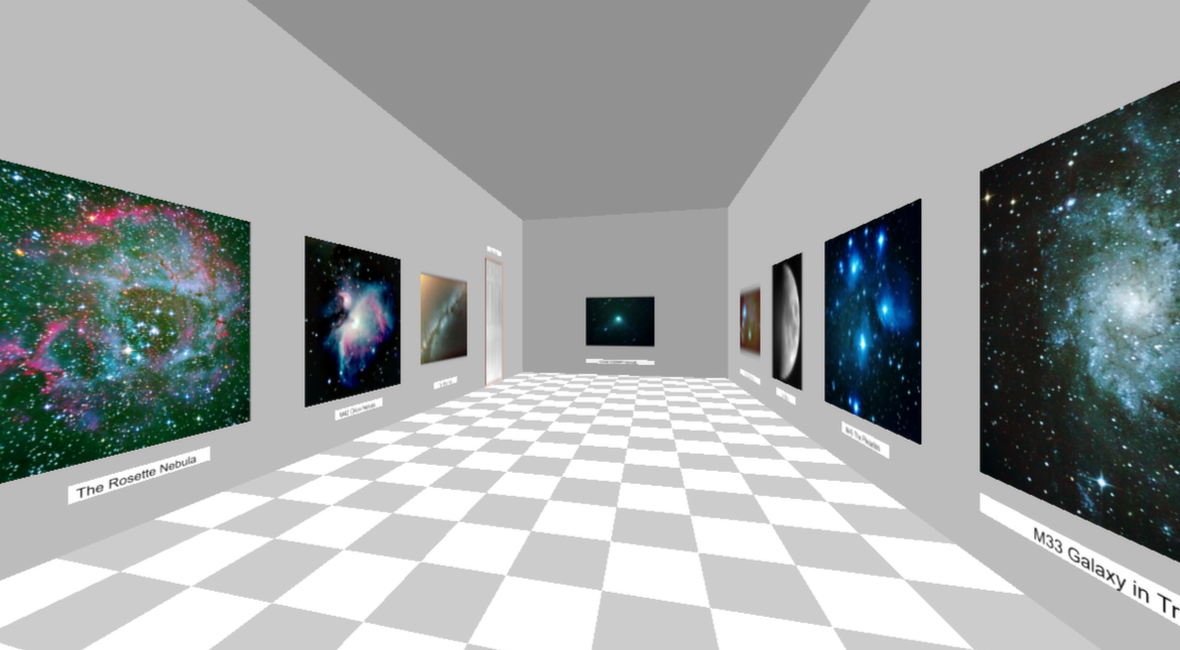 This gallery has been written using three.js in order to display images fast enough from any perspective.